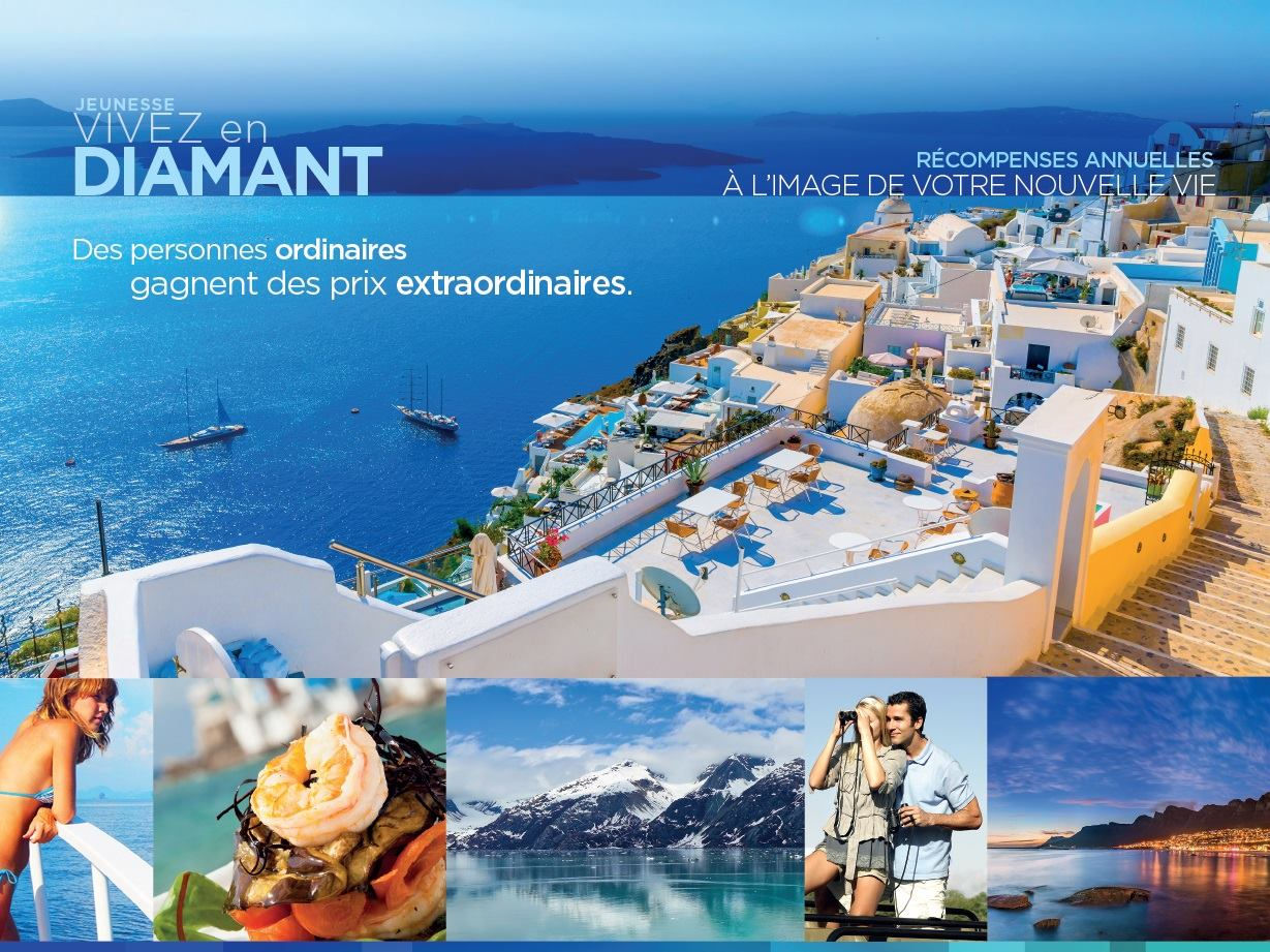 C'est comme ça—le style de vie Diamond est à vous ! Vous l'avez gagné et nous voulons vous récompenser non pas une fois, mais année après année ! En tant que Directeur Diamond, vous et votre conjoint nous rejoindrez pendant notre Découverte Diamond de six jours qui a lieu tous les ans. Nous nous rendrons dans l'un des plus luxueux complexes hôteliers 5 étoiles du monde, et vivrons ensemble des aventures incroyables. C'est le style de vie de rêve—une vie d'un Directeur Diamond avec Jeunesse. Pour participer à la Découverte Diamond, vous devez être qualifié au rang de Diamond Director pendant au moins trois mois avant le voyage et Actif tous les mois après avoir atteint le rang de Diamond Director.